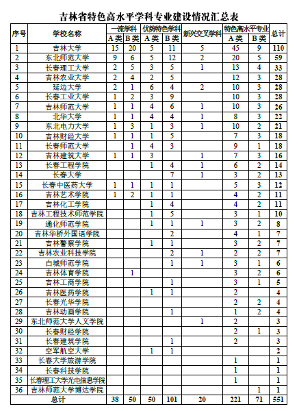 附件:吉林省特色高水平学科专业建设情况汇总表.pdf