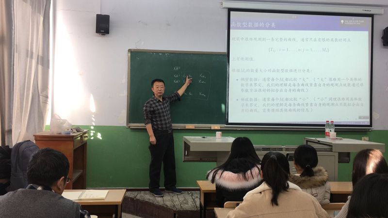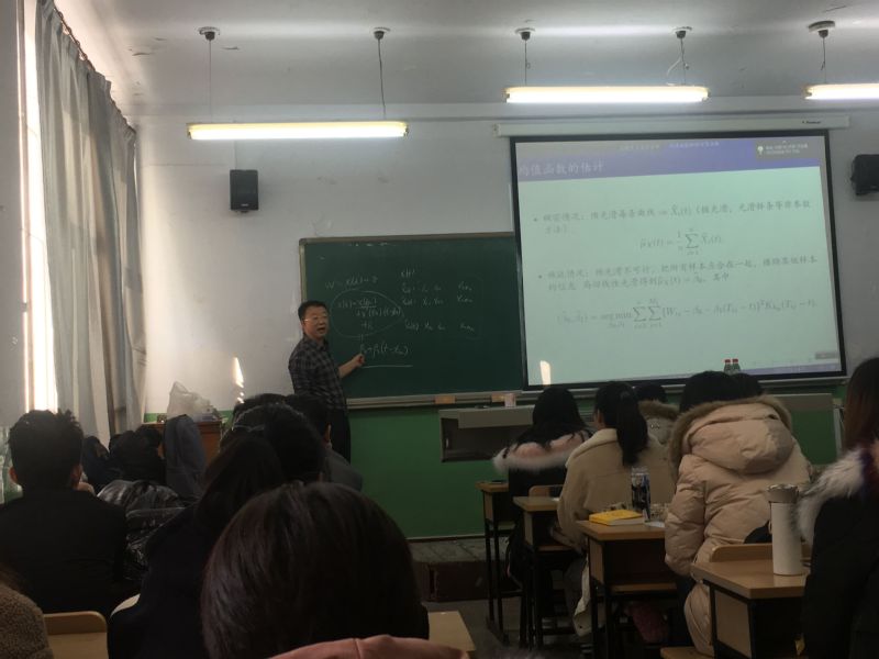 报告会中,张日权教授结合他多年的学习,教学和研究经验,向同学们介绍了函数型数据的概念。其中,张日权老师通过举心电图例子引入一维数据,又分别举例介绍二维及多维的概念。现实中很难观测到一条完整的曲线,只观测到的是集散的点。面板数据,纵向数据是函数型数据的特殊情况。函数型数据分成稠密数据和稀疏数据,并举出男女孩身高增长图作为实例。首先,对函数型数据分情况进行估计,并运用主成分方法对无限维进行降维成有限维,得出函数型主成分得分。接下来,张老师又对函数型数据进行回归模型的估计,分成四大类进行讲解,并对模型进行检验。最后,MILE米乐官方网站的老师和同学们与张日权老师进行了互动,同学们及时提出了自己的疑惑,张日权老师也对同学们提出的问题进行了详细的解答,又为同学们在这个方向上的学习给出了指导性的建议。并激励同学们要担负起数学与统计人才应有的使命,为我国的数学与统计学建设作出应有的贡献,也希望大家能够脚踏实地的学习理论知识,为数学与统计学的发展不懈努力。