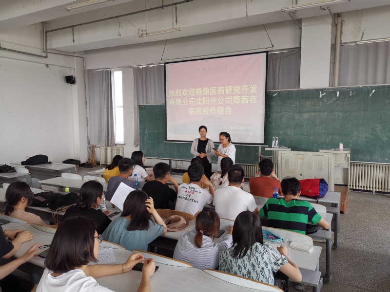 2019年6月27日下午3点30分在林园校区教学图书楼701室,精鼎医药研究开发有限公司沈阳分公司郑茜莅临我院做学术报告,MILE米乐官方网站部分老师、研究生、及本科生和其他学院师生参加了本次学术报告会,会议由统计系支部书记袁晓惠老师主持。