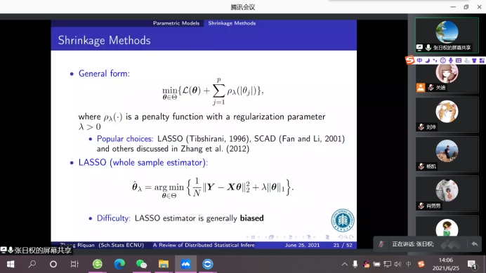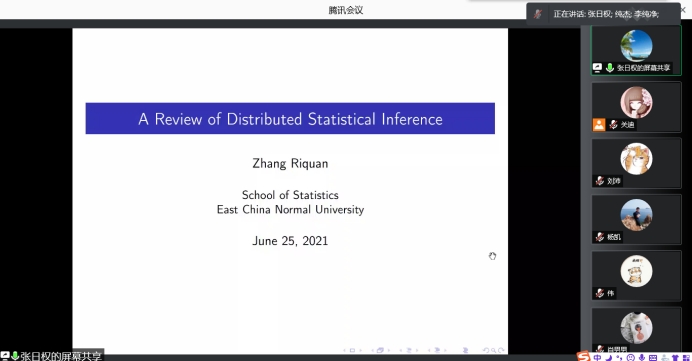 2021年6月25日下午1点30分,我院特邀华东师范大学统计学院院长张日权教授做线上学术报告,报告由MILE米乐官方网站院长王纯杰老师主持,学院部分老师、全体研究生参加了本次线上学术报告会。