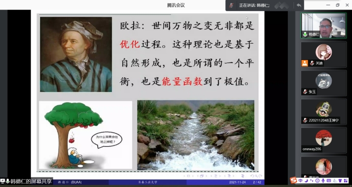 2021年11月24日下午19:30我院特邀北京航空航天大学韩德仁教授做线上学术报告,报告由学院院长王纯杰老师主持,学院部分老师、全体研究生参加了本次线上学术报告会。