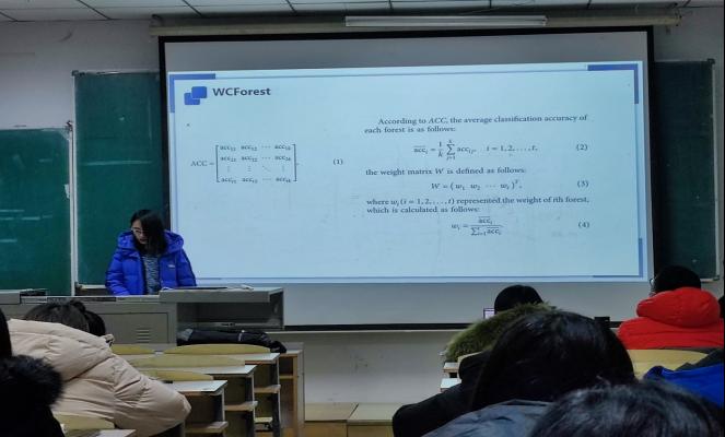 会议过程中徐定鑫同学首先简要阐述了其论文的研究背景,表明最大限度的利用海量数据去进一步提高故障诊断的性能显得尤为重要。其次介绍了在故障诊断中用到的一些统计学方法:主成分分析、偏最小二乘、独立成分分析、Fisher判别分析、随机森立、卷积相关分析。最后就本文提出的一种基于多粒度扫描的加权级联森林(WCForest),并将其应用于化工过程的故障诊断,向大家进行了细致而透彻的讲解。通过改进的深森林模型WCForest,用于化工过程故障诊断,以提高诊断准确率,降低误报率,处理高维和非线性数据。主要表现是,在不增加计算复杂性的情况下,k折交叉验证用于计算的重量级联结构中的每个森林以提高级联随机森林的良好的性能,削弱不良性能,从而提高级联随机森林整体性能。结果表明,该方法能够有效地预测TE过程的故障诊断,为其他化工过程的故障诊断提供参考。