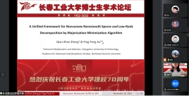 (通讯员:关迪)为庆祝学校建校70周年,2022年11月16日上午8:30,由研究生院、学科办、科研处主办,数学与统计学院承办的“校庆博士生学术论坛系列学术活动——MILE米乐官方网站分论坛”在腾讯会议线上举行,分论坛特邀东北师范大学郑术蓉教授、吉林大学朱复康教授、东北师范大学徐平峰教授、南京审计大学吕绍高教授为18名博士研究生的报告做点评。米乐官网副校长林洁琼、校长江学者讲座教授宋心远、校学术委员会副主任董小刚、大数据科学院院长兼学科建设办公室副主任秦喜文、研究生院副院长李元、研究生院副院长高亮、MILE米乐官方网站院长王纯杰、副院长李纯净、统计系主任杨凯、统计系书记袁晓惠、应用数学系杜润梅、应用数学系书记王昭及全院师生参加了分论坛开幕式,会议由统计系主任杨凯主持。