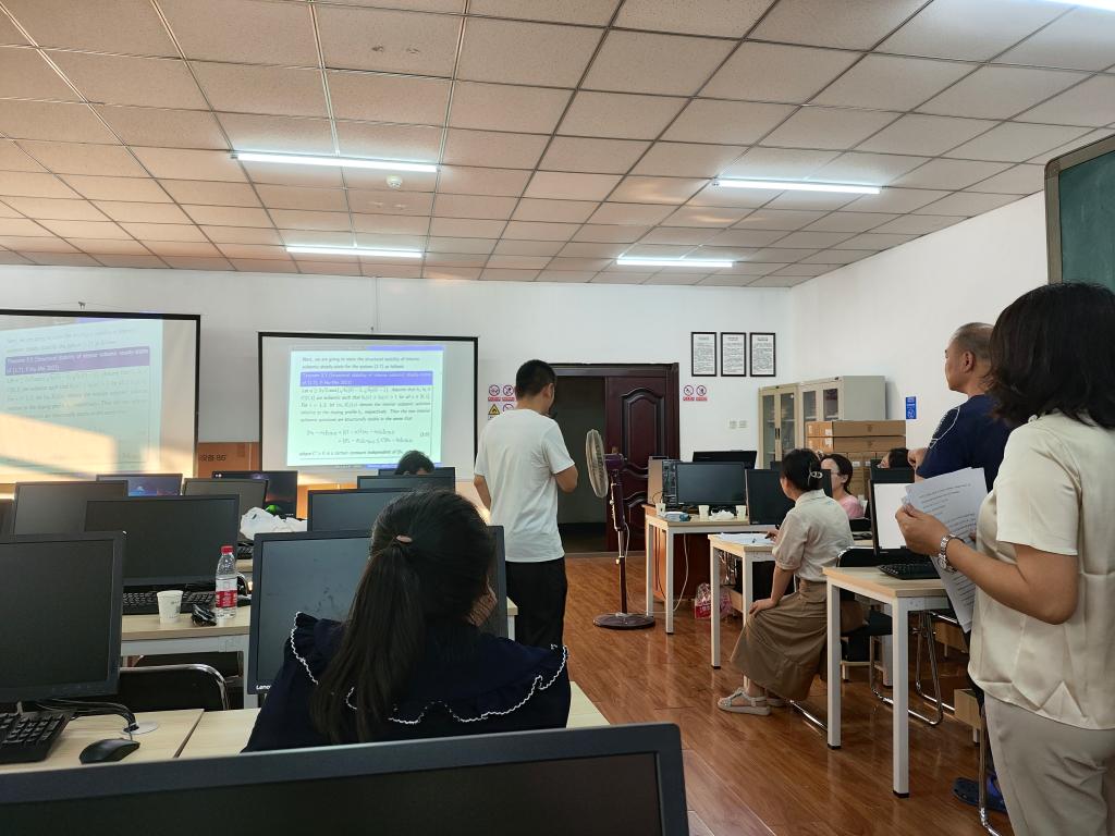 冯教授简述了自己的研究方向与研究工作。随后将报告中的专业名词进行了介绍,并对于研究内容进行简要的解读。接着冯教授对于自己的课题做出模型了假设,并对于假定的模型给予了一些条件限制,对于此课题的研究现状进行了说明。接着冯教授对于主要的结果进行了呈现。对两种解的效果进行详细说明,并做了比较。将提到的定理进行了充分的证明。