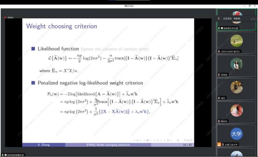 张新雨老师以往文献中信息技术的发展开始讲起,信息技术的进步使得网络数据在经济和金融领域日益频繁。为了估计金融网络,提出了一种有向无环高斯图的最优模型平均方法。对于一组随图结构而变化的候选模型,使用最小化负对数似然标准的权重来平均候选模型的估计,不仅建立了该方法的渐近最优性、权值收敛性和参数一致性,而且阐明了不同模型对收敛速度的影响,并证明了错误指定候选图模型下的参数一致性。仿真研究和对银行国际负债数据的实际分析结果表明了该方法的可行性。