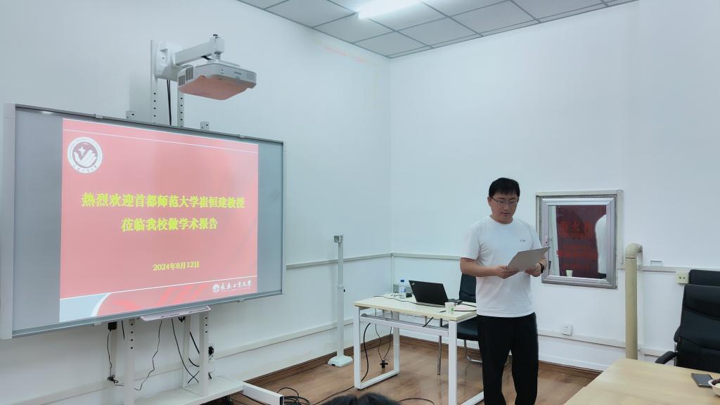 (通讯员:关迪)2024年8月12日上午9:00,首都师范大学崔恒建教授莅临我院做学术报告,报告在南湖校区老图四楼会议室进行学术报告进行。MILE米乐官方网站副院长杨凯副教授主持会议,学院部分老师及研究生参加了本次学术报告会。