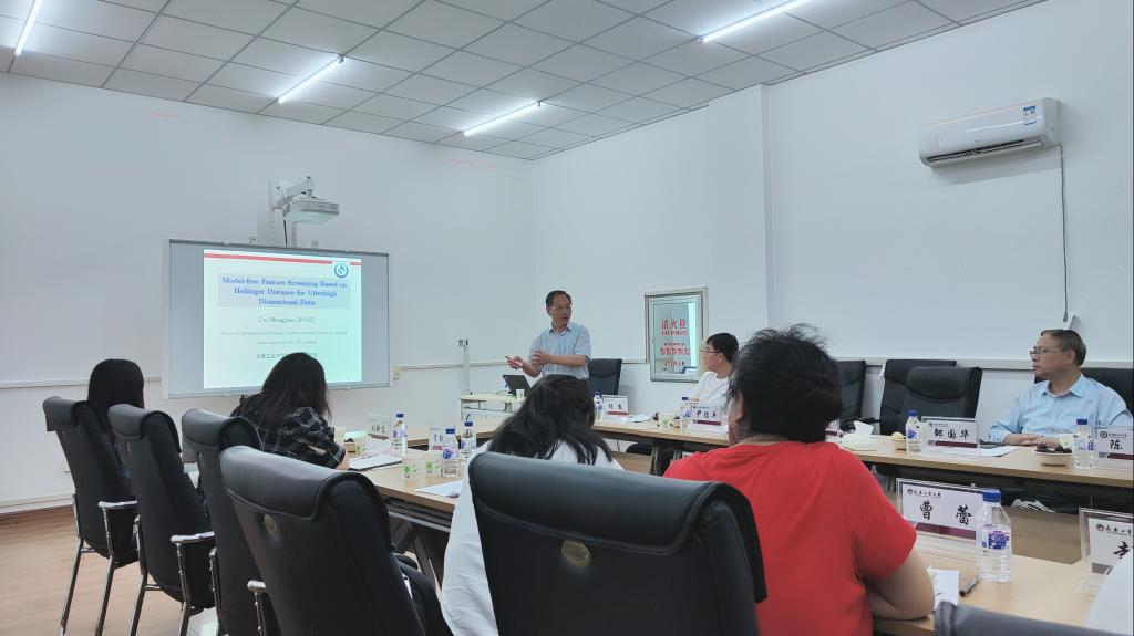 会上,崔恒建教授分享了最新研究。介绍了一种基于Hellinger距离的综合无模型特征筛选算法。研究表明,该算法在重尾和偏斜数据中表现出较强的竞争力,同时与现有的轻尾数据方法保持着一定的可比性,其在一系列数据中仍具备鲁棒性。在实例数据包含离散响应变量和连续响应变量两个示例上,均说明了所提算法的有效性。