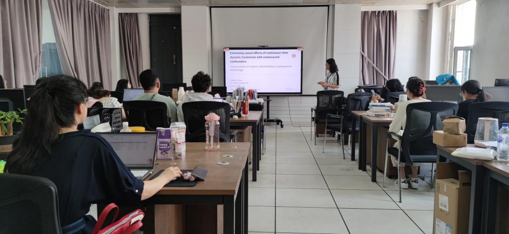 周教授的报告内容生动且有趣,研究方向前沿且有价值,向大家充分展示了催产素对产后出血的因果分析。报告会上,老师和同学们都听的十分入神,大家都表现出对于该研究方向浓厚的兴趣,报告现场十分融洽且高效。会后,周教授同大家展开了热烈的讨论,周教授对于大家提出的问题做出了专业的解答和建议,并对该方向后续的研究前景进行了充分的设想。此次报告会取得的效果斐然,不仅极大的拓宽了学生们的科研视野,同时也提高了学生们的科研水平,充分了解了报告会中相关方向的发展前景。