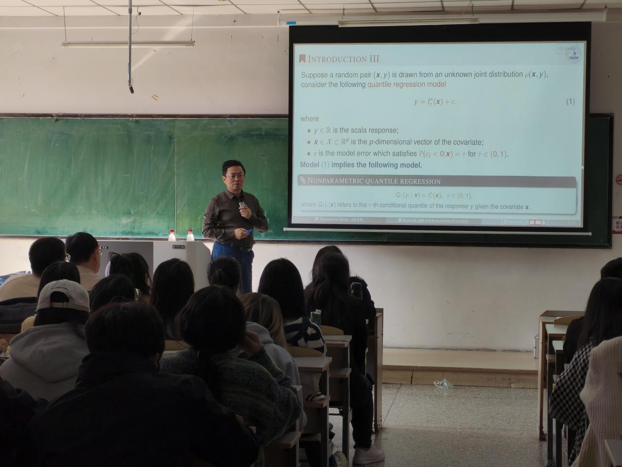 本次学术交流会拓展了同学们的学术视野,也激发了同学们的学习热情,更加努力学习研究新的领域与方法,并使老师和同学们对随机特征核分位数回归的相关知识有了更深的理解,聆听报告的师生均表示受益匪浅。