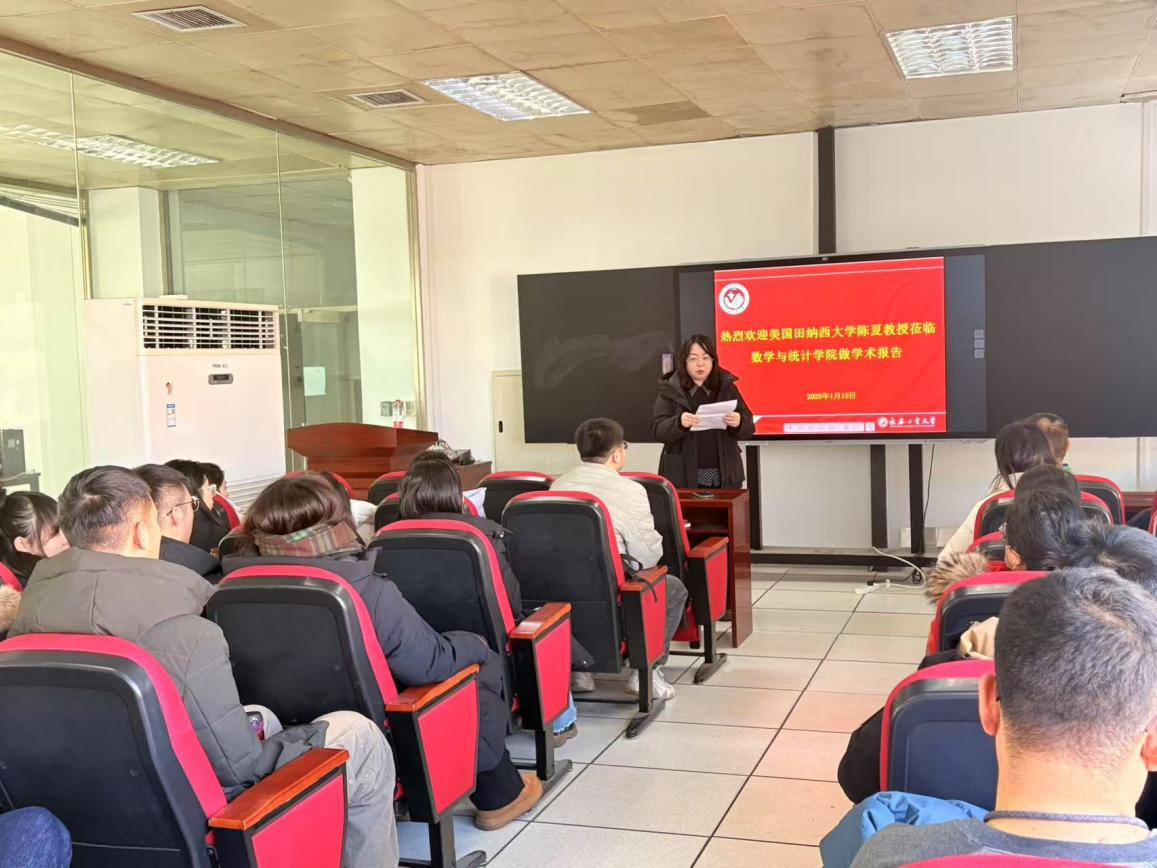 (通讯员:关迪)2025年1月15日上午10:00,美国田纳西大学数学系陈夏教授莅临我院做学术报告。本次报告由MILE米乐官方网站承办,在南湖校区老图书馆四楼会议室进行,会议由学院副院长李纯净副教授主持,学院部分老师及研究生参加了本次学术报告会。