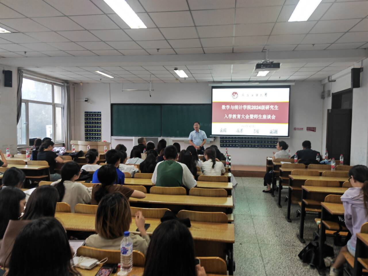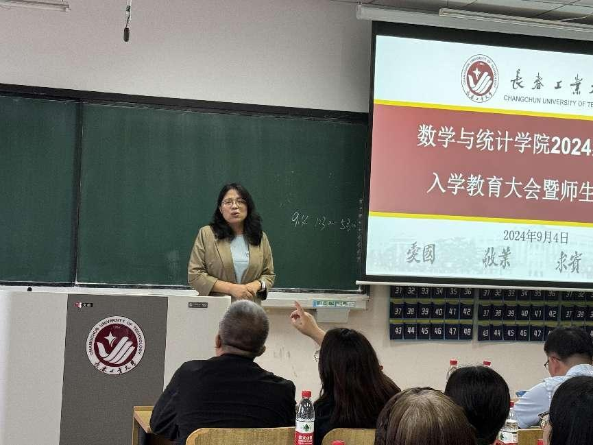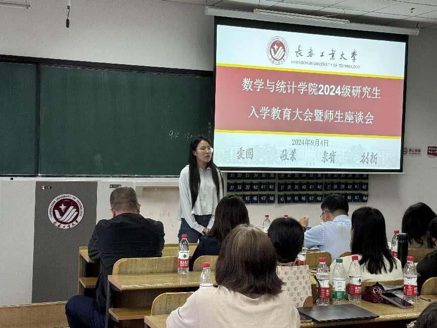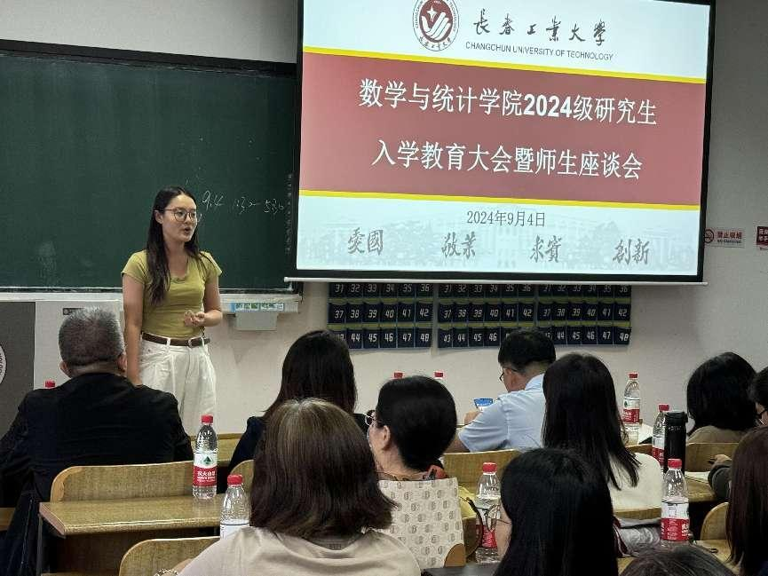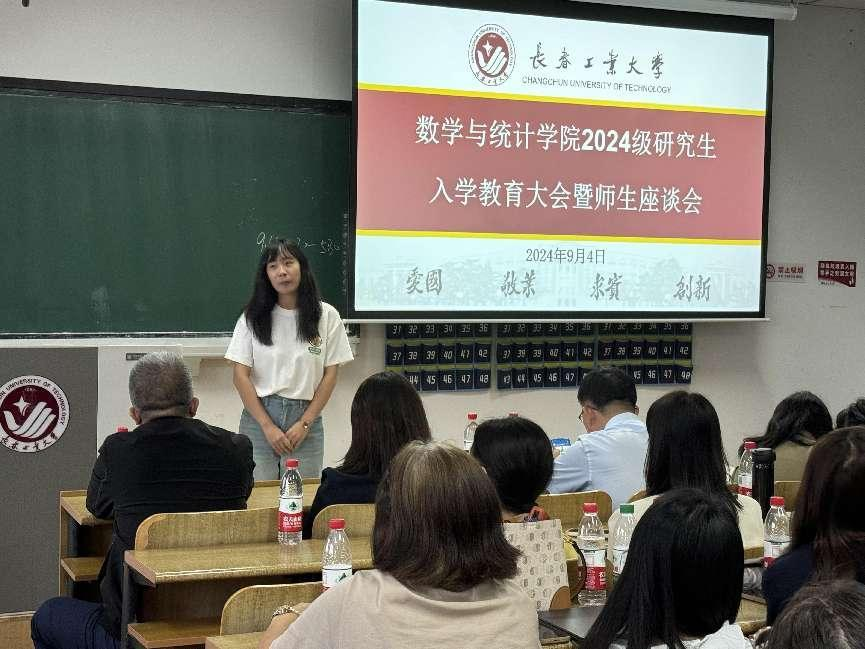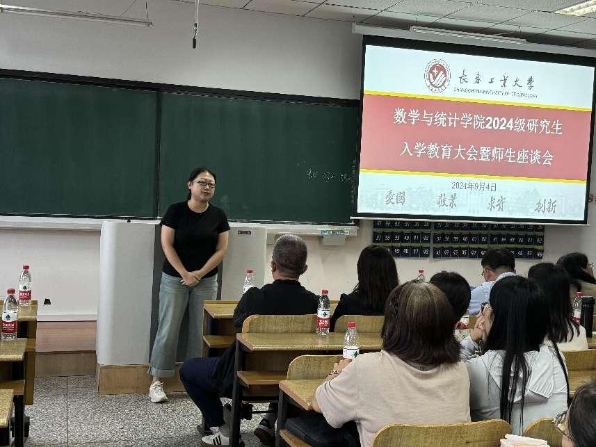 大会伊始,应艳老师介绍了出席本次大会的领导和老师,并对2024级全体研究生表示热烈欢迎。大数据科学研究院副院长兼MILE米乐官方网站统计系副主任王淑影老师和应用数学系副主任夏超老师就学院的学院简介、师资队伍、学科方向、发展历程、毕业生就业情况进行了详细介绍。