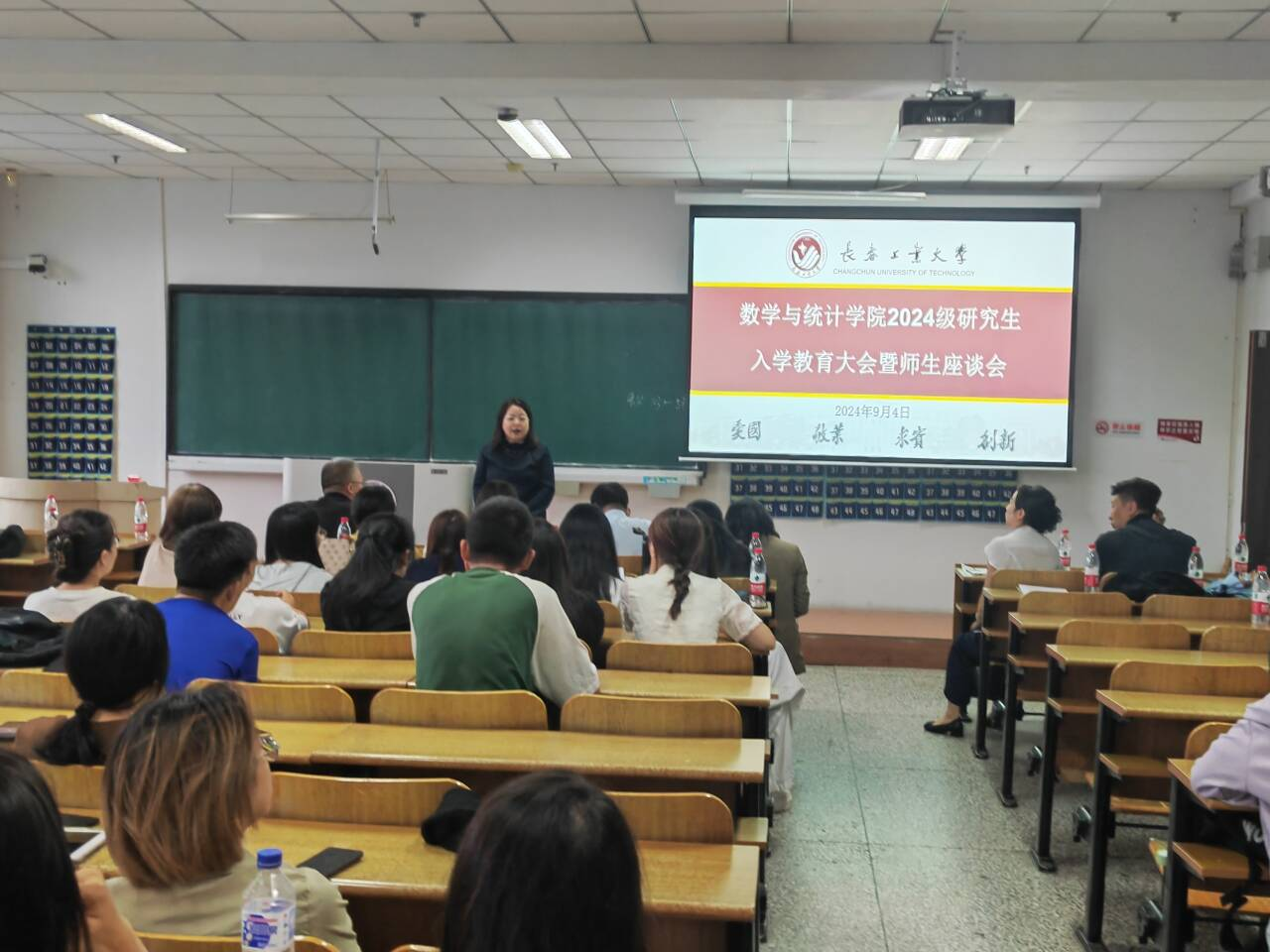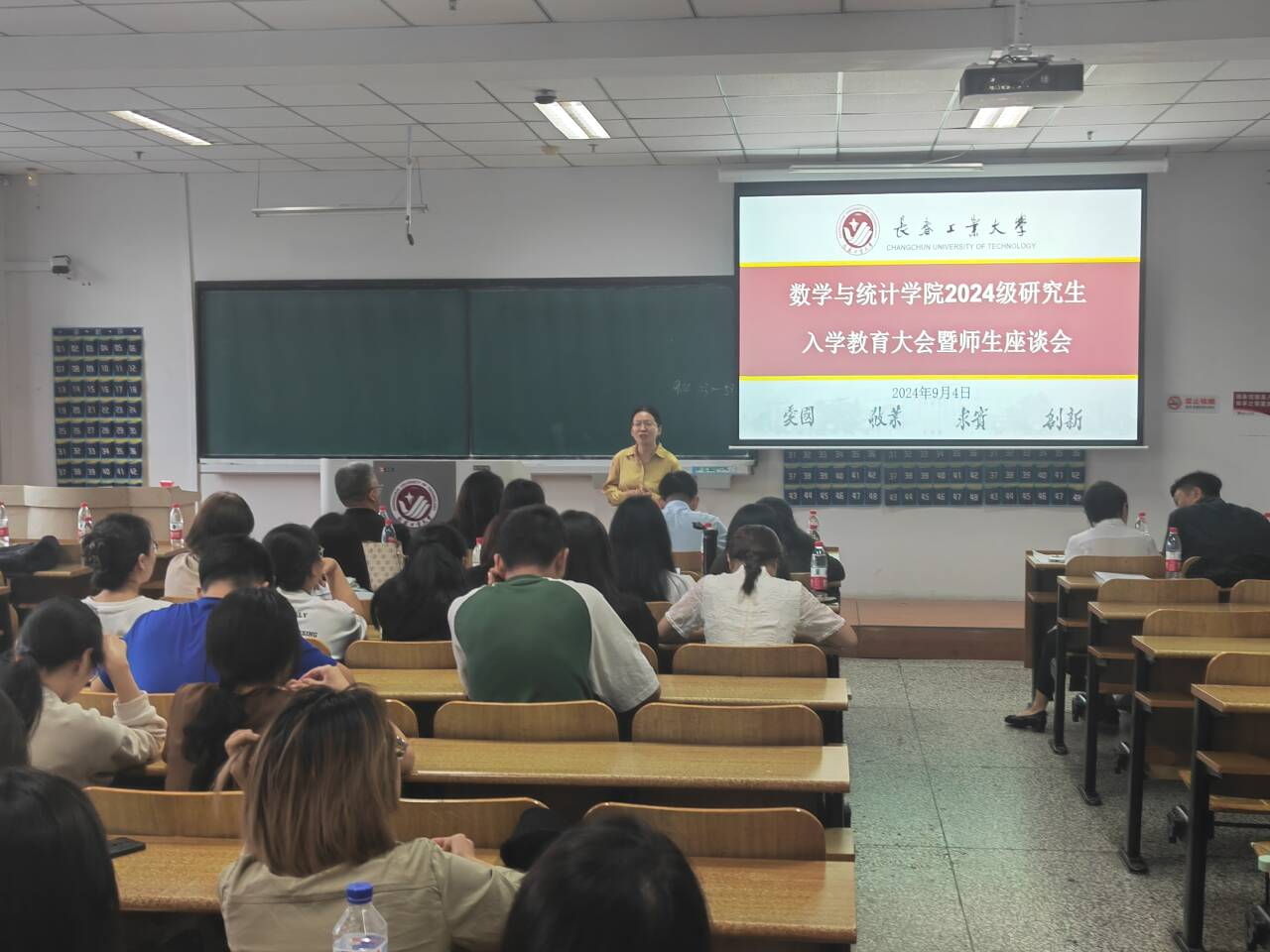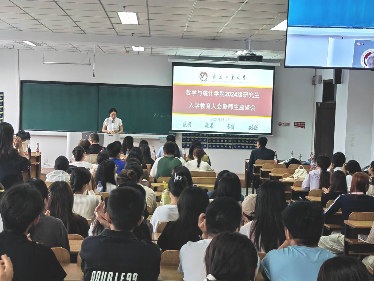 大会伊始,应艳老师介绍了出席本次大会的领导和老师,并对2024级全体研究生表示热烈欢迎。大数据科学研究院副院长兼MILE米乐官方网站统计系副主任王淑影老师和应用数学系副主任夏超老师就学院的学院简介、师资队伍、学科方向、发展历程、毕业生就业情况进行了详细介绍。