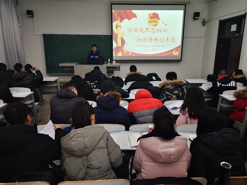 MILE米乐官方网站团委讯(通讯员:桂尚珂 张秉心)为了深入学习贯彻习近平总书记系列重要讲话精神,进一步加大对团员青年的培养,扎实推进共青团发展,2018年12月12日早上7点,MILE米乐官方网站团校在MILE米乐官方网站林园校区教图楼309教室举办“翻转团课”系列活动之“学团史不忘初心,知团史共创未来”主题活动。本次活动由170801班班长虎佳尧主持,大一全体团员参加了此次活动。