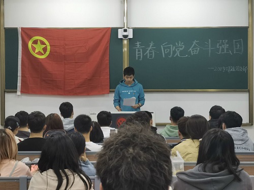 此次主题团日活动在各班团支书的带领下,全体团员们起立齐唱《义勇军进行曲》并庄严宣誓,誓词句句铿锵有力,字字掷地有声,许下承诺,扛起担当。各班级团支书和优秀团员代表们做了团旗下的演讲,号召团员们在新时代继承和弘扬党的优良传统,有效发挥了共青团是党的助手和后备军作用,争做担当民族复兴大任的时代新人。在齐唱团歌环节结束之后,180801班团支书闫新洋带领大家观看了“青春向党,奋斗强国”系列精选视频。200802班团支书颜兴洲向同学们列举了建党以来的红色故事和红色诗歌,并详细讲述了新中国成立的历史以及所取得的成就。在活动开展的过程中,同学们认真听讲,积极回答问题,深刻地体会到党与祖国发展的紧密联系。通过口述介绍、媒体播放等多种方式结合,引导团员们树立正确的价值观和人生观,不断思索进取,树立远大志向,为祖国美好的明天不断奋斗。会议最后,团员们就“如何传承、发扬党的红色基因”等话题做了交流分享。