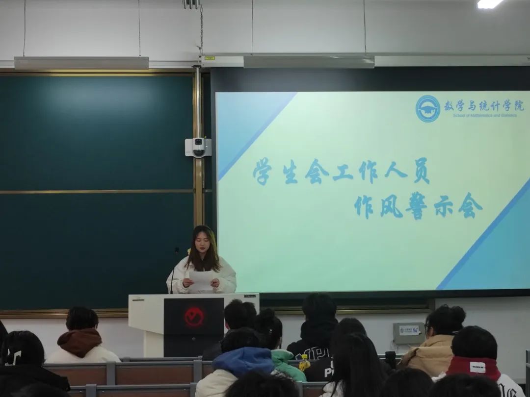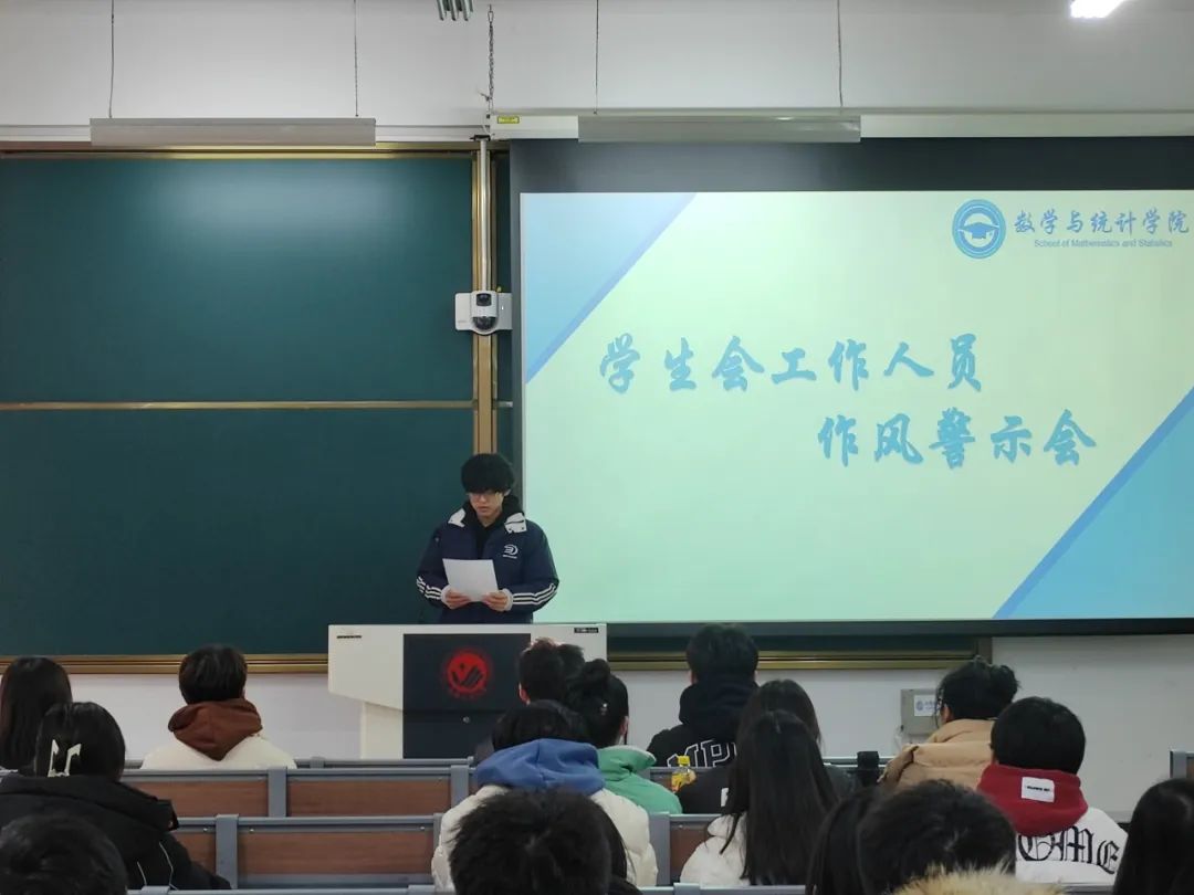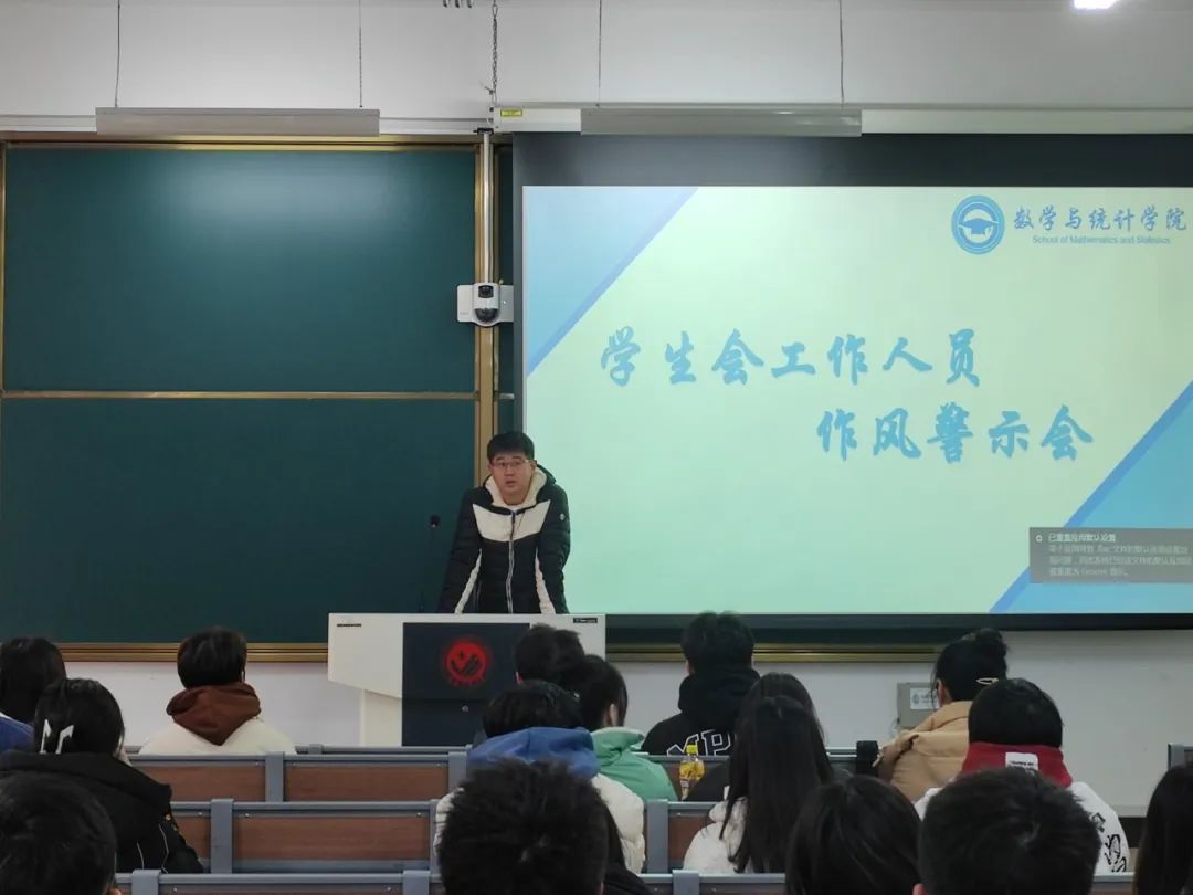 MILE米乐官方网站团委讯(通讯员:唐梦然 汪新雨)为深入学习党的二十大精神,进一步推进学生会组织改革,加强学生会全体工作人员的作风建设,明确职能,加强自律,营造良好的气氛,2023年12月22日,MILE米乐官方网站在MILE米乐官方网站北湖东区主楼228召开学生会工作人员作风警示会,本次会议由MILE米乐官方网站23级辅导员白海洋老师主持,数学与统计学院学生会全体工作人员及团委中心学生干部骨干列席参会。