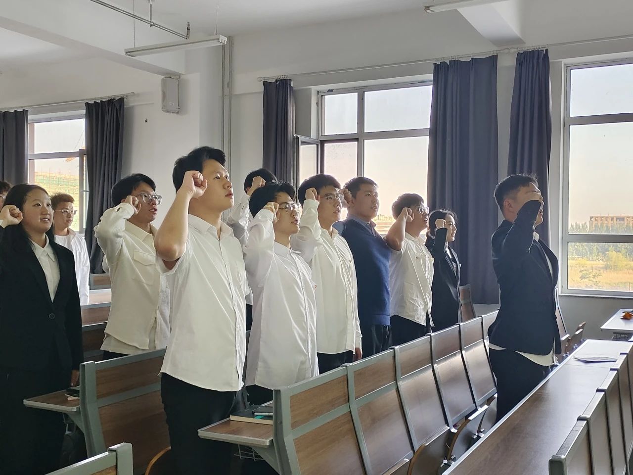 入团仪式在庄严的团歌中拉开序幕。新团员们齐唱《光荣啊,中国共青团》,歌声中蕴含着青年团员的激昂斗志和对共青团的忠诚之心。