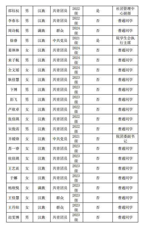 经审核,认为产生的MILE米乐官方网站学生会第五学生代表大会代表66名,符合代表条件,现予以公示。公示期内如有异议请及时与老师反映。