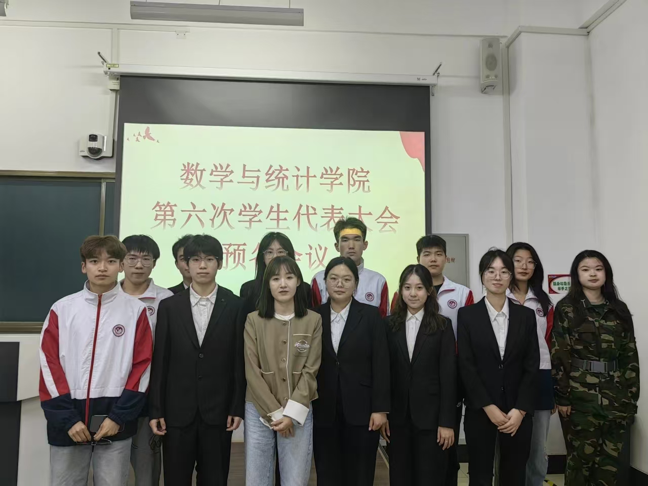 会议第一项:报告学生代表出席人数,本次会议应到19人,实到19人,请假0人,全员到齐。
