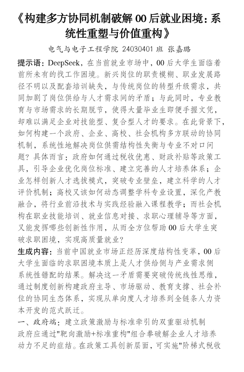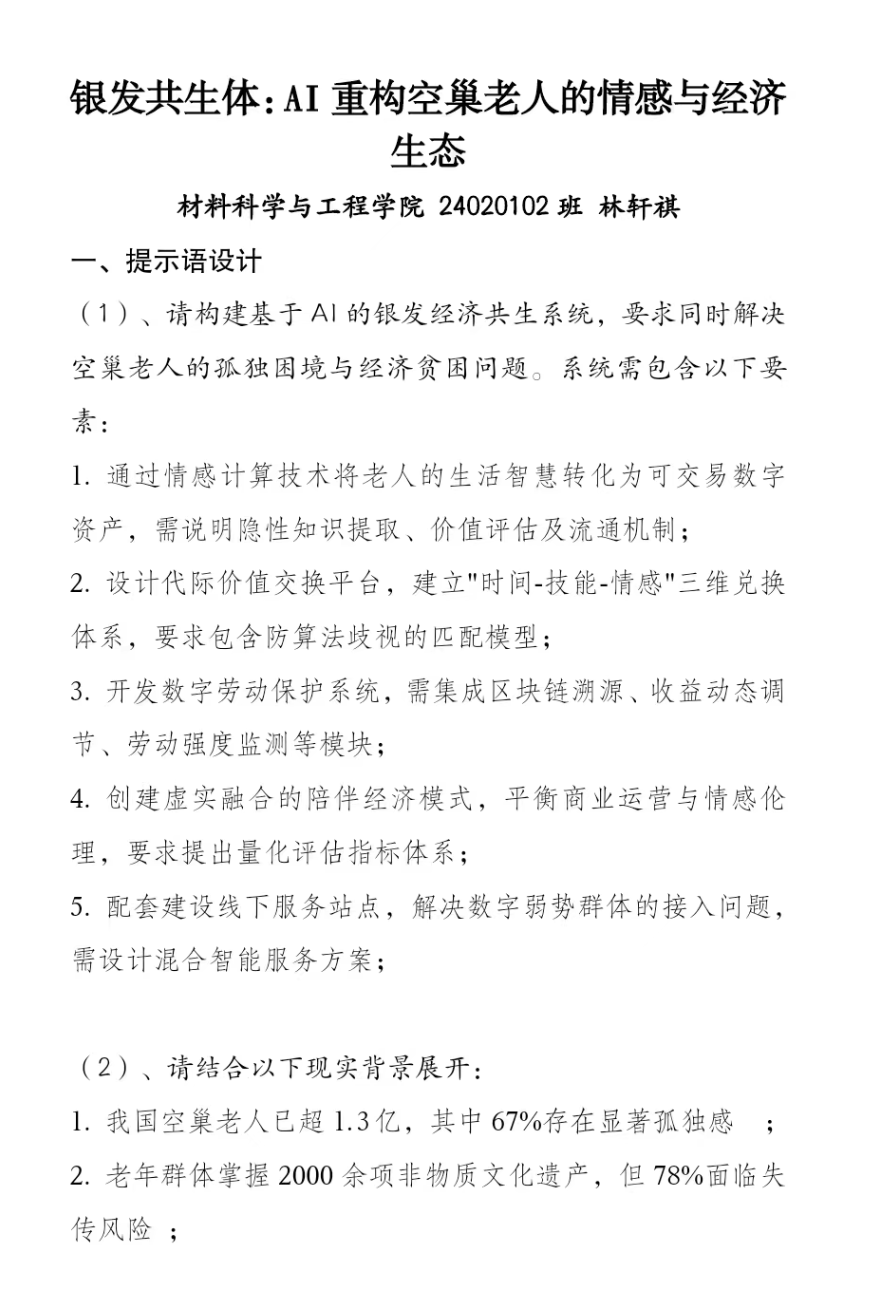 本次大赛征集了同学们对AI与教育、生活、社会等领域融合的独特见解,鼓励跨学科、创新性思考。活动收到校内不同学院、不同年级142篇投稿作品。参赛者们充分发挥创意,将AI的理解与想象融入文字,从多元角度展示了AI与人类思想的交融。经过评选,获奖名单如下: