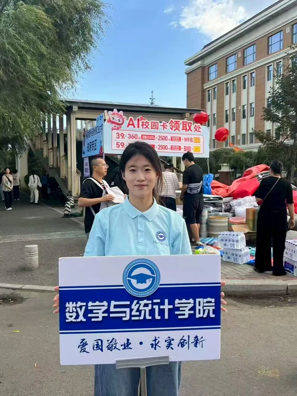 迎新现场的打卡点前,