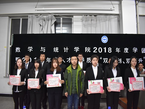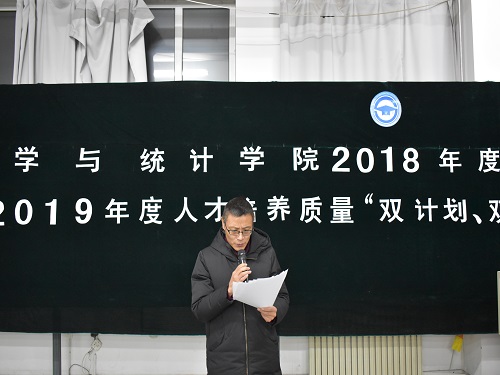 MILE米乐官方网站团委讯(通讯员:桂尚珂 张秉心)为总结MILE米乐官方网站在2018年度中研究生、本科生的教育与管理工作,共青团工作成果,激励全院同学们提升学习和工作等方面的积极性,表彰一年里学团工作先进集体和优秀个人,2019年1月3日下午4:30,MILE米乐官方网站在教图楼701隆重举行了MILE米乐官方网站2018学年学团表彰表彰大会暨2019年度人才培养质量“双计划,双提升”工程启动仪式,学院党委书记朱宏伟、院长王纯杰、党委副书记王丹、副处级专职组织员兼研究生辅导员应艳、团委书记郑岩、应用数学系主任刘铭、统计系党支部书记李纯静出席了本次大会,2017级、2018级全体同学及受表彰的研究生和本科生个人与集体代表参加大会,会议由团委副书记崔仕贤同学主持。