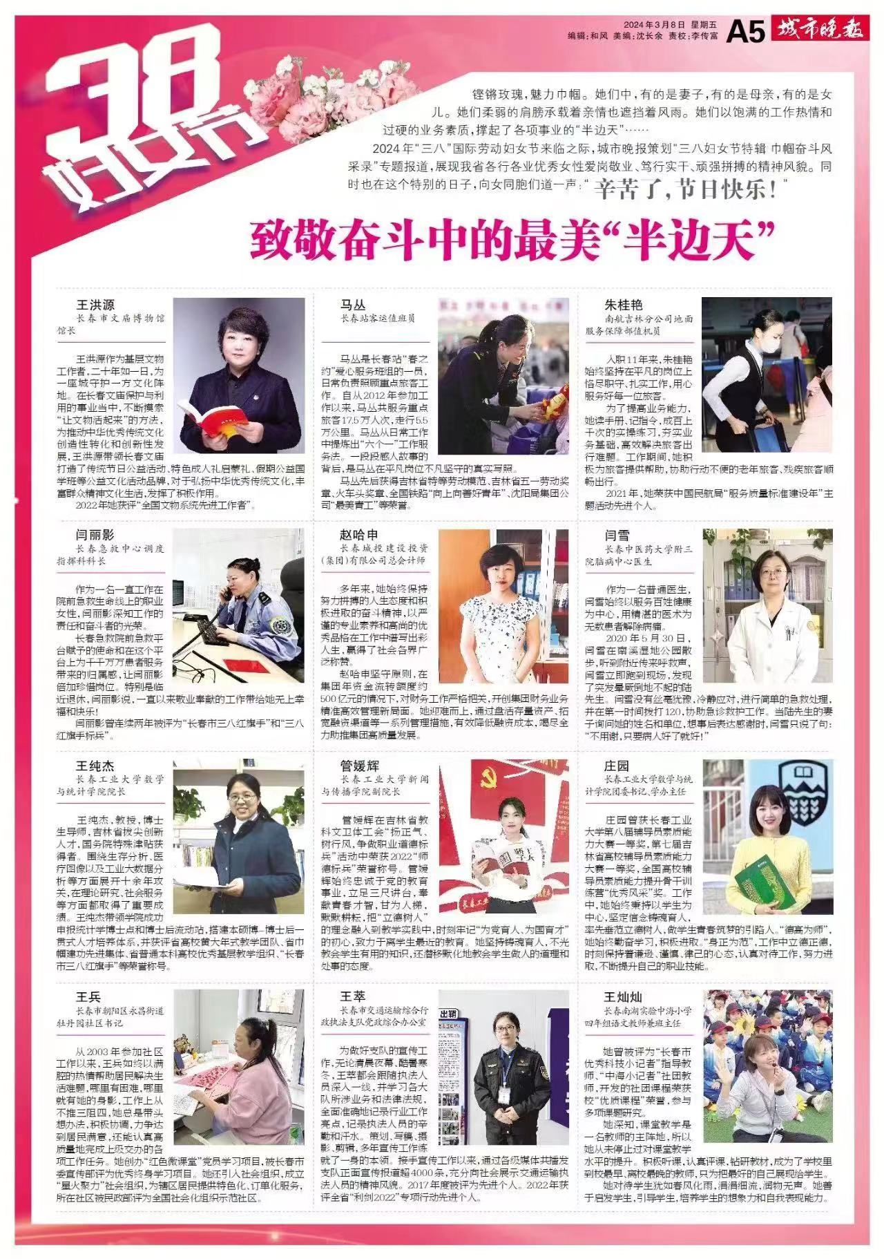 铿锵玫瑰,魅力巾帼。2024年“三八”国际劳动妇女节来临之际,城市晚报策划“三八妇女节特辑巾帼奋斗风采录”专题报道,MILE米乐官方网站院长王纯杰与MILE米乐官方网站团委书记、学办主任庄园这两位教师的光荣事迹被城市晚报刊登,展现了MILE米乐官方网站优秀女性教师爱岗敬业、笃行实干、顽强拼搏的精神风貌。
