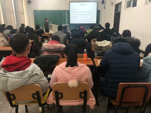 报告会上,李启寨教授以“Bayesian neural networks for selectionf drug sensitive genes”(选择药物敏感基因的贝叶斯神经网络)为题,向同学们展示了统计学在医学上的重要性。他从寻找抗癌药物基因的建模说起,指出了目前存在的三大困难,随后利用前馈贝叶斯神经网络针对三大难题分别给出了相应的改进:首先用一个非线性函数描述因变量与自变量的关系,再通过变量选择对自变量进行降维,通过数值模拟显示了提出方法的有效性,最后成功应用到抗癌药物响应问题中。让大家深刻领略到了统计学在生物医学中的重要性,对米乐官网师生的学习和科研具有重要的启发意义。