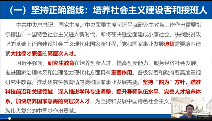 此次培训系统全面,内容丰富,对研究生新时代教育改革政策和行动有了更深入的了解,促进学科建设和研究生教育高质量发展具有重要意义。