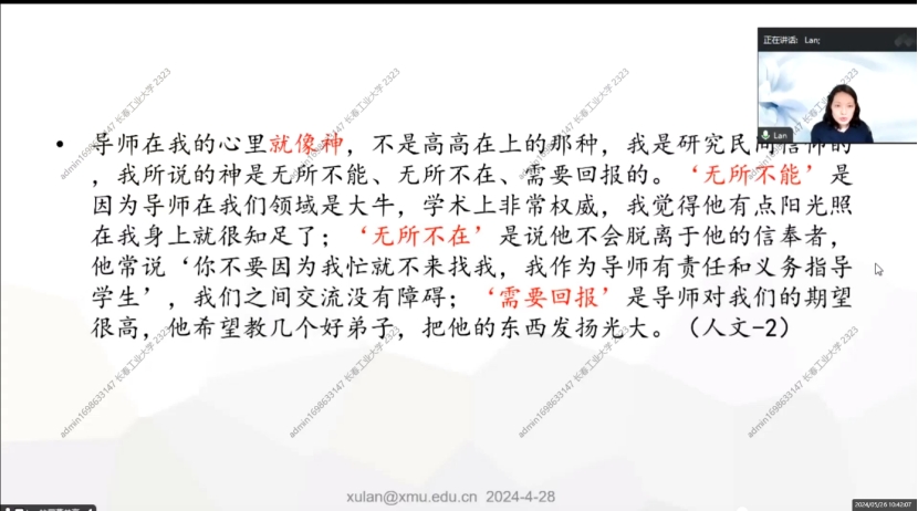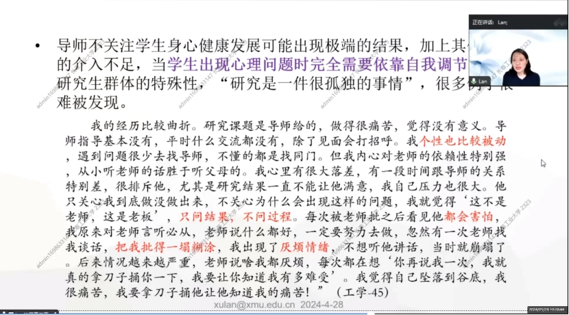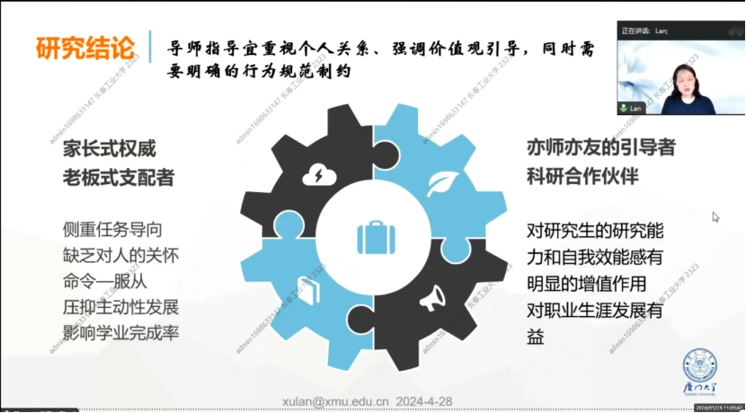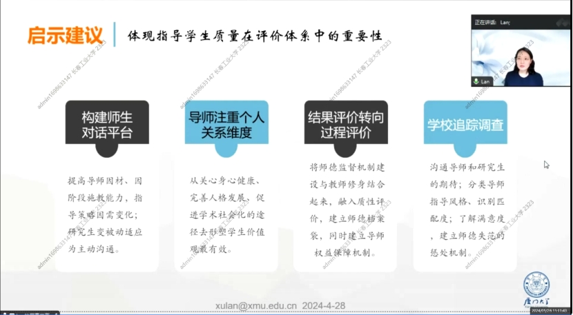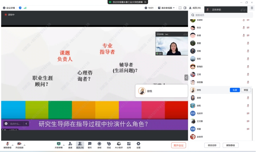 此次培训系统全面,内容丰富,进一步阐述了导师指导过程与师生关系如何影响研究生培养质量,如何提高和加强,对促进学科建设和研究生教育高质量发展具有重要意义。