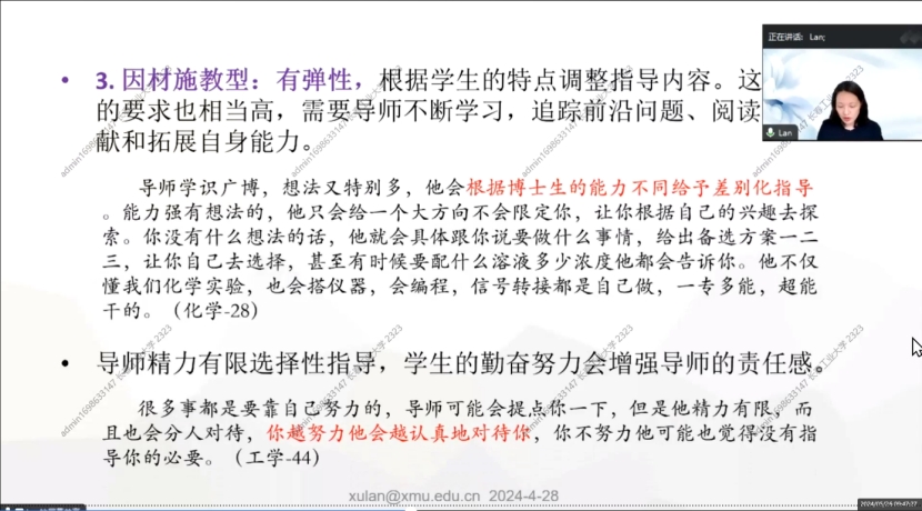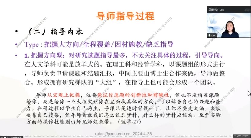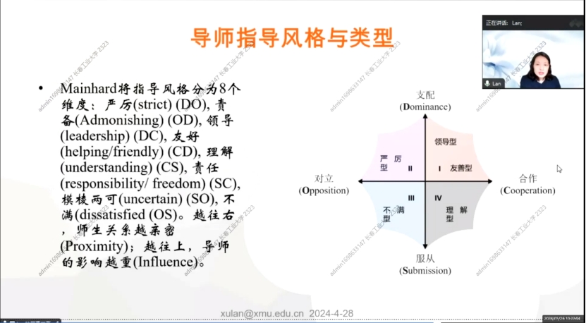 因材施教型:有弹性,根据学生的特点调整指导内容。这个要求也相当高,需要导师不断学习,追踪前沿问题、阅读文献和拓展自身能力。