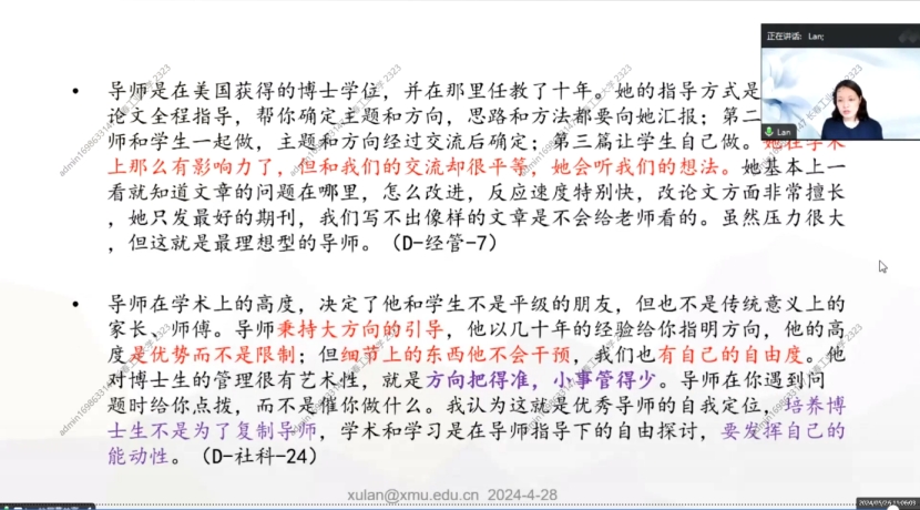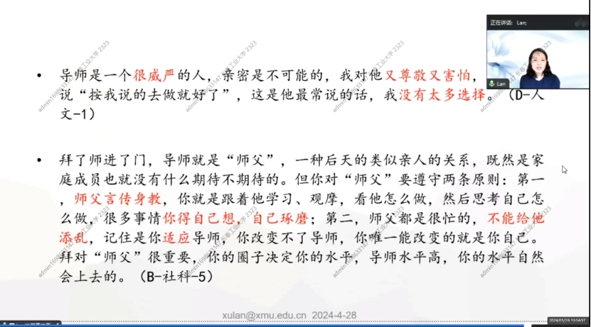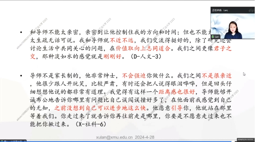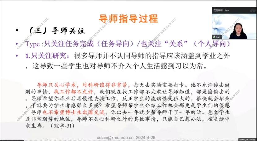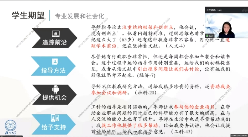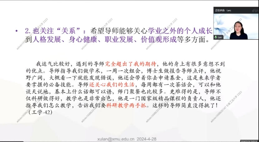 2.也关注“关系”:希望导师能够关心学业之外的个人成长到人格发展、身心健康、职业发展、价值观形成等多方面。