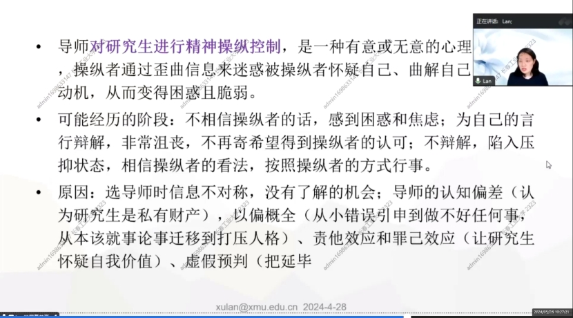 1.只关注研究:很多导师并不认同导师的指导应该涵盖到学业之外,这导致一些学生也对导师不介入个人生活感到习以为常。