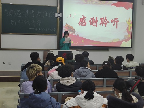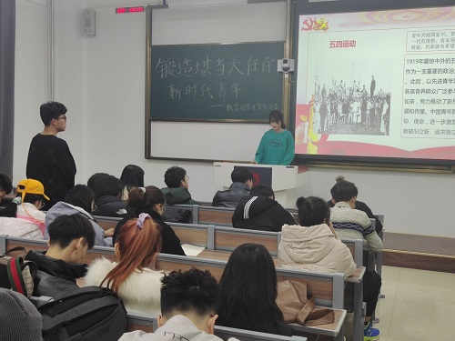 在本次会议中,陈铭首先向大家介绍了我国1919年发生的震惊中外的五四运动,这场运动激发了中国人民和中华民族破旧立新、追求独立的勇气和信念。我们的伟大祖国由过去的积贫积弱到站起来、富起来、强起来,是一个充满艰辛、筚路蓝缕的奋斗过程,这是党领导各族人民战天斗地、辛勤耕耘的实践硕果。作为新时代的中国青年,我们应该永葆“一寸丹心图报国”的家国情怀,努力做爱国主义精神的弘扬者和实践者。陈铭表示五四运动的爆发、中国共产党的成立、新民主主义革命的胜利、社会主义建设的成就等都离不开中国青年群体的积极参与和奋力推动。陈铭向参会成员解释了习近平总书记传递的伟大精神:把个人理想同中国梦、民族梦统一起来,做到与时代同步伐、与祖国共命运、与人民齐奋斗。相信参会人员已经深刻体会到自己肩上的担子之重。会议最后,陈铭呼吁大家:中国青年群体应始终怀有“天下兴亡、匹夫有责”的远大理想信念和崇高价值追求,要将个人命运融入国家社会发展的历史进程,并为之矢志奋斗。