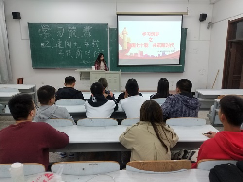 MILE米乐官方网站团委讯(通讯员:高帅帅 桂尚珂)为了纪念建国七十年,激励我院学生干部以实现民族伟大复兴为己任,提升自身素养、不断开拓视野,我院于2019年9月17日晚6点30分在教图楼209教室开展了以“建国七十载,共筑新时代”为主题的“学习筑梦”活动。18级全体学生干部参加此次活动,会议由180802班团支书张宁馨主持。